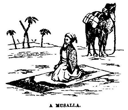 MUSALLA. . The small mat, cloth, or carpet on which a Muslim prays. The term sajjadah is used in Egypt in Persia Jui-namaz.