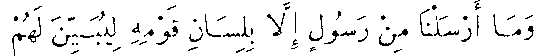 "and we have sent no Prophet save in the tongue of his own people that (his message) might be plain to them ". So it is obvious that the Qur'an, being sent to the Arab people, must be in Arabic, but since it sums up and completes all previous revelations, it is only to be expected that technical terms of Hebrew and Syriac or other origin which were used in previous revelations should be included in this final revelation. Moreover, as the Qur'an is intended for all peoples, oue should not be surprised to find in it something from all languages,3 a