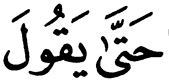 | There is a different vowel on the last letter. The fatha vowel used in the Hafs qira'a places the verb into the subjunctive mood which gives the preceding particle hatta the meaning so that. The Warsh qira'a uses the damma vowel which places the verb into the imperfect indicative mood which gives the particle hatta the meaning until. | |