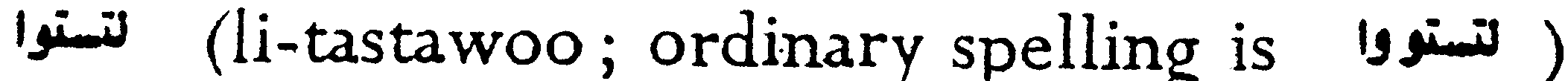 Part 2: The True State Of The Qur'an Back To Part 2 Index Q106:2. We note that Hamidullah emphasises that these are only ‘made to appear to be vocal’ when he says "as if the second were a sign of vocalisation and not a letter of the alphabet." Indeed, as with many other ‘signs’ in the Qur’an, they are false ‘vocalisations’, things that are "made to appear" to be vocalisations when they are in fact ‘replacement’ letters of the alphabet. Hamidullah makes an extremely important point here. But, not all these added ‘letters of the alphabet’ can be found in both the Medinan (Warsh) and Kufan (Hafs) texts. This again shows that the text ‘AS IT IS’ was quite acceptable to some who used it in their ‘new reading’. Others chose to go beyond the ‘Uthmanic text in their ‘new readings’. Since it is the ‘Islamic school of thought’ concerning the Arabic of the text of the Qur’an which we are examining, and not some other, every such addition indicates the need to do something to make the ‘original’ text ‘perfect’. The theology, on the other hand, teaches that it was already perfect because it had a Divine origin and was ‘perfectly’ transmitted from Allah to Jibreel to Muhammad - and from Muhammad to others, etc.. 3/ Nuns Missing/ ‘Added’ (a) Another feature mentioned in the 1938’s Note IX and also raised by Hamidullah is that of a consonant nun missing’ in Q21:88. It is depicted in the Note IX just cited, at the left end of the bottom line, namely (the word nUnji is formed by ‘correcting’ through ‘false vocalisation’).